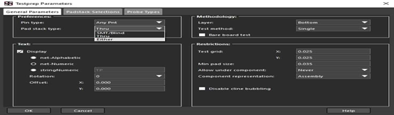 Allegro PCB Designer的測試點(diǎn)參數(shù)菜單。